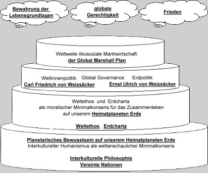 Weltanschauung, Weltethos, Weltpolitik und Weltwirtschaft,